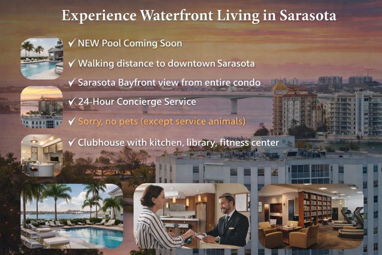 WE HEARD YOUR FEEDBACK. UPDATES ARE COMPLETE. THIS CONDO NOW SHOWS LIKE A MODEL. Welcome to your front-row seat to Sarasota Bay at the highly sought-after Regency House on Gulfstream Avenue. This beautifully updated 2-bedroom, 2-bath residence sits on the 4th floor and offers 1,424 sq. ft. of bright, open living space-plus a wall of floor-to-ceiling windows that deliver sparkling bay views from morning coffee to sunset cocktails.The open-concept living and dining areas are flooded with natural light (yes, it's as good as it sounds), while the designer kitchen features stone countertops, custom cabinetry, and stainless-steel appliances-perfect for hosting, entertaining, or simply enjoying the view while pretending you're on vacation.The primary suite is a peaceful retreat with panoramic water views, a generous closet, and a beautifully updated ensuite bath. The second bedroom is equally spacious and flexible-ideal for guests, a home office, or a stylish retreat of your own.Residents of Regency House enjoy resort-style amenities including a 24-hour concierge, heated pool, updated clubroom, and secure covered parking-all designed for effortless downtown living.Located just steps from Marina Jack, Bayfront Park, Main Street dining, shopping, galleries, parks, live music and Sarasota's vibrant arts and cultural scene, this is downtown waterfront living done right.Easy to schedule showings. Come see why this is one of the BEST values on the Bayfront-and why you'll want to act fast.